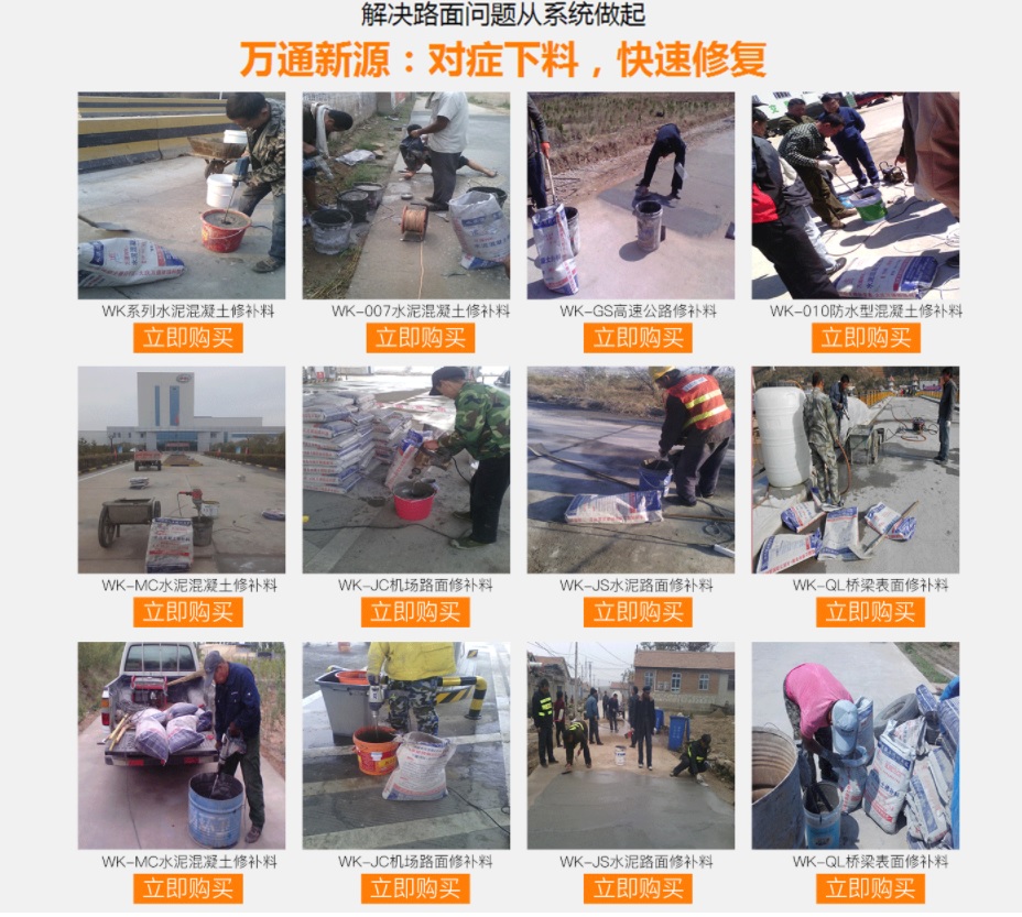 萬通新源水泥混凝土修補料  水泥路面修補 混凝土路面修補料 水泥地面起砂破損修補 水泥路面修補料 水泥地面起砂處理劑 混凝土道路修補料 大慶萬通新源科技有限公司 混凝土道路修補 路面維修 萬通新源電話:15164544333 網(wǎng)址:www.dqwtlq.cn www.wtlq.cn